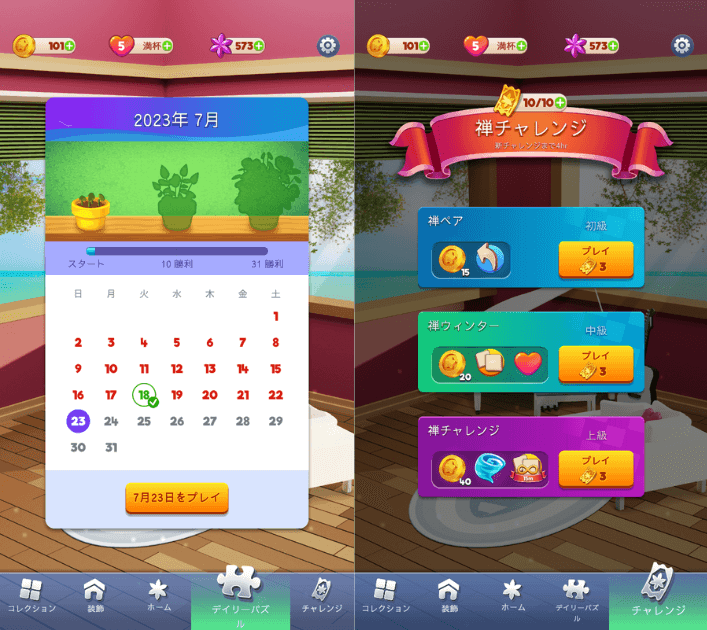 その他には、デイリーパズルチャレンジがありますが、こちらをクリアしてもスターイベントは貰えないので、基本的にはレベルにだけ集中すれば良いと思います。